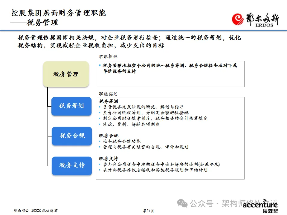 税务管理是财务管理的重要组成部分,鄂尔多斯集团将通过统一的税务筹划和合规检查,优化税务结构,降低税务风险。通过专业的税务团队和先进的税务管理系统,确保税务申报的准确性和及时性。