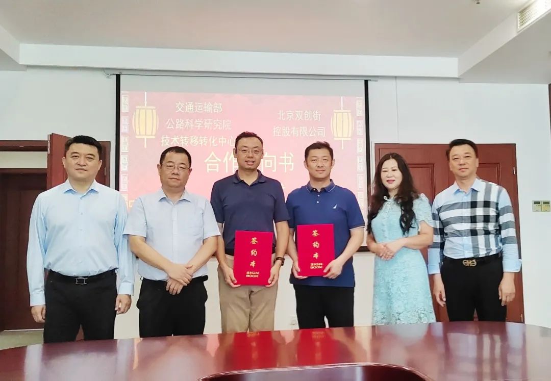 为推动更多优质科技项目服务我国道路交通领域的现代化建设,拓展科技成果在不同领域的应用场景,2023年8月18日,在交通运输部公路科学研究院技术转移转化中心、双创街控股、德国史太白SGIT相关领导和嘉宾的共同见证下,交通运输部公路科学研究院技术转移转化中心与双创街控股正式签署合作协议。