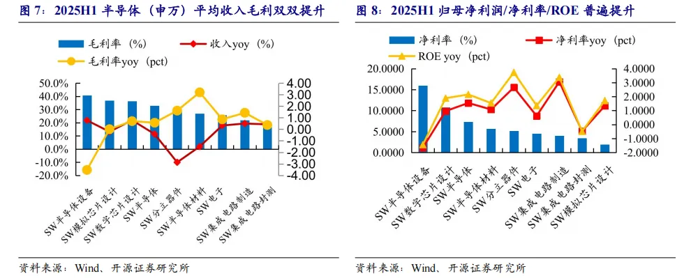 业绩层面,2025H1,数字芯片设计板块收入同比+30.0%,在较高基数水平下归母净利润同比+44.0%,同时数字芯片设计平均行业毛利率达到36.3%,进一步同比提升0.71pct。