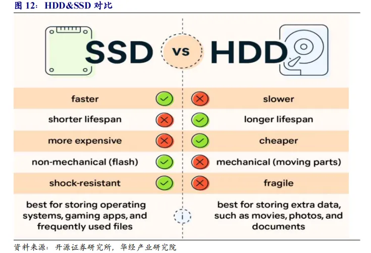 1.本轮周期内HDD的涨价和缺货将加速企业级SSD在冷存储领域占比持续提升:在传统数据中心储存分层架构中,HDD凭借每单位储存容量(GB)的极低成本优势,稳居冷数据(Cold Data)主流储存方案。冷数据包含备份档案、历史记录等不常被存取,但需要长期归档保存的数据。随着Inference AI(AI推理)应用扩张,冷数据储存需求也急速攀升。由于全球主要HDD制造商近年未规划扩大产线,无法及时满足AI刺激的突发性、巨量储存需求。目前NL HDD交期已从原本的数周,急剧延长为52周以上,加速扩大CSP的储存缺口。未来随HDD缺货及HDD-SSD价格差收敛,我们认为企业级SSD景气度将持续向上。