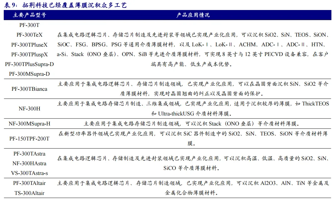 6.1.2、薄膜沉积:拓荆科技已经在众多工艺实现覆盖