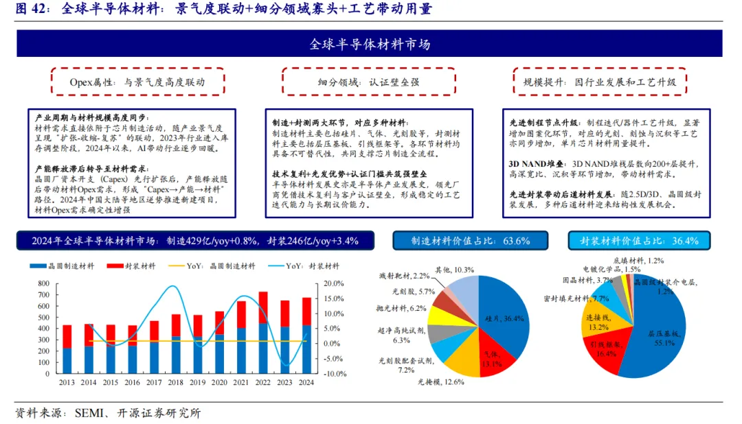 从行业属性来看,半导体材料具备显著的运营支出(OPEX)特征,需求与下游晶圆制造产能及稼动率高度相关,短期波动受半导体景气周期影响显著。