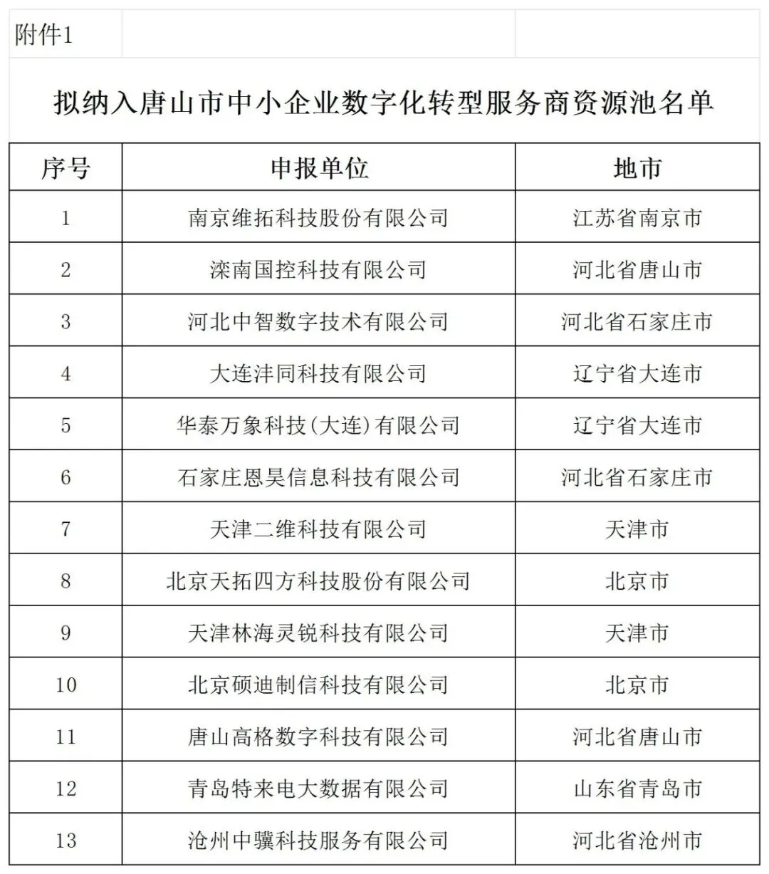 关于对拟纳入唐山市中小企业数字化服务商资源池及服务产品资源池名单(第四批)的公示