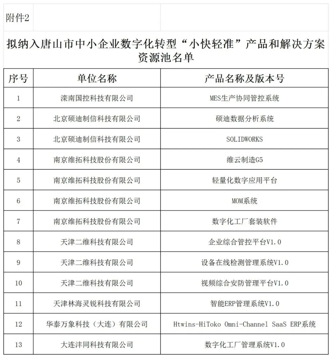 2026年1月14日,唐山市工信局关于对拟纳入唐山市中小企业数字化服务商资源池及服务产品资源池名单(第四批)的公示,原文如下: