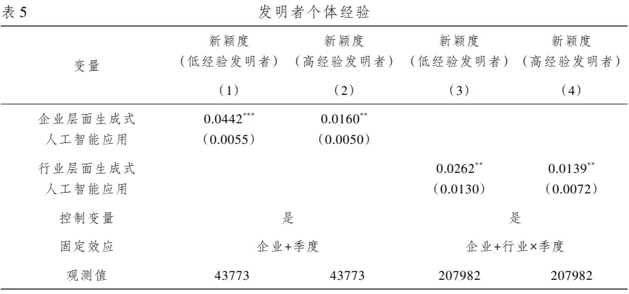 生成式人工智能对低经验发明者的促进效应更强。