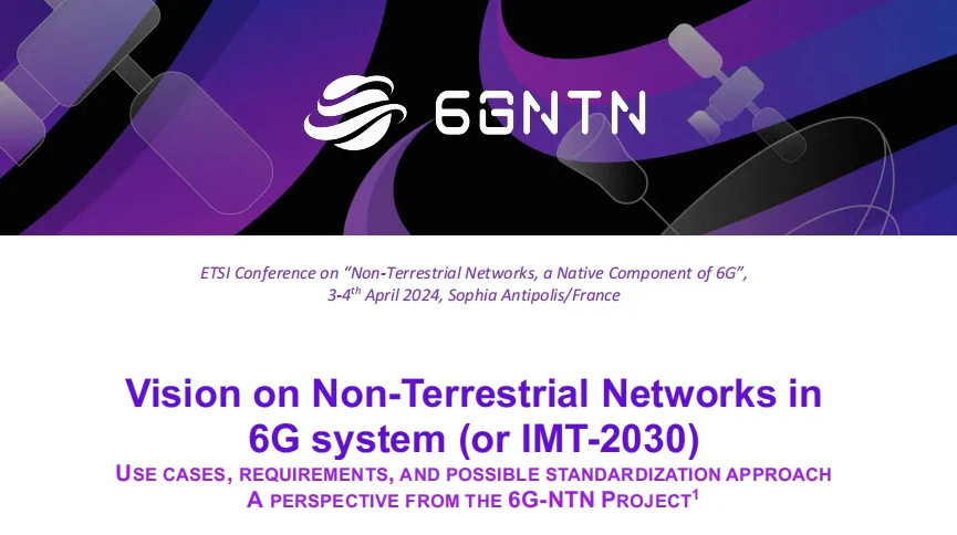 《6G系统中的非地面网络愿景(IMT-2030)》(Vision on Non-Terrestrial Networks in 6G system (or IMT-2030)),为欧洲6G非地面网络(6G-NTN)项目组于2024年4月发布,该白皮书探讨了6G生态系统中未来的连接性,即下一代无线通信技术的发展方向。非地面网络(NTN)是指超越地球表面以提供全球或区域性连接的通信网络。在全球连接不断发展的背景下,NTN对未来6G生态系统具有关键作用,它弥合了传统地面网络(TN,如基站和光纤电缆)与新型空间通信之间的差距,从而确保全球范围内的无处不在、弹性化和可持续的连接性。该6G-NTN白皮书于ETSI举办的“非地面网络:6G的原生组成部分”会议(法国索菲亚-安提波利斯,2024年4月3-4日)期间发布,为NTN在6G中的重要性提供了综合视角,识别了市场细分、连接场景以及NTN集成的一般设计原则。白皮书还提出了标准化方法,以确保用户能够实现无缝集成和增强的连接体验。白皮书的主要发现包括:- 拥有智能手机和可穿戴设备的消费者希望获得扩展覆盖,并实现卫星网络与地面网络之间的无缝切换。