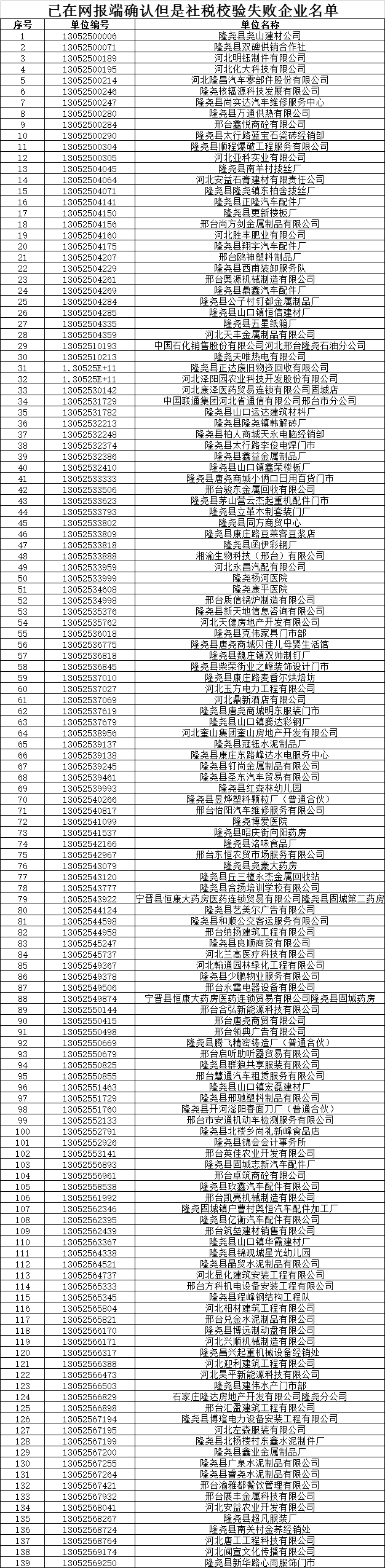 附:已在网报端确认但是社税校验失败企业名单、未在网报端确认企业名单