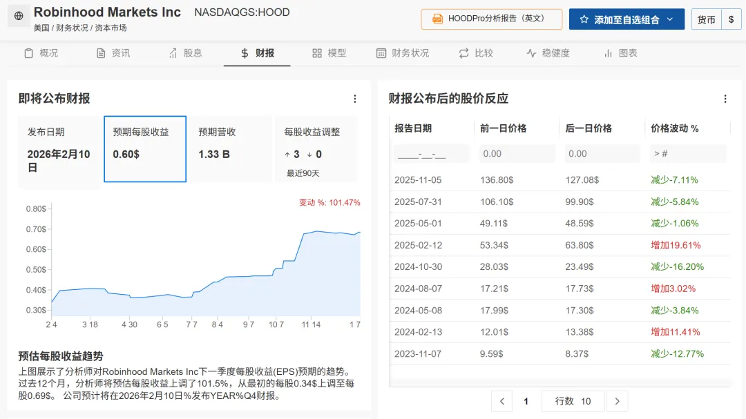 1. 罗宾侠(Robinhood)财报发布日期: 2月10日预计每股收益增长: +51.1%(同比)预计营收增长: +31.7%(同比)