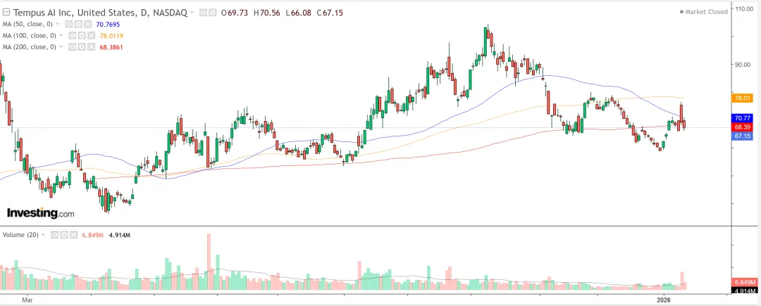 2025年,坦帕斯人工智能股价累计上涨105%,且持续跑赢大盘。在个性化医疗需求日益增长的背景下,该股成为医疗科技板块中具备韧性的投资选择。