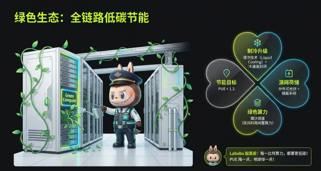 绿色设计:模块化机房、全链路节能、绿色算力调度;