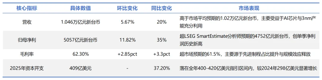 这份财报不仅印证了先进制程技术的领先性,更引发全球机构对AI需求可持续性、技术迭代红利及海外扩产影响的深度探讨。