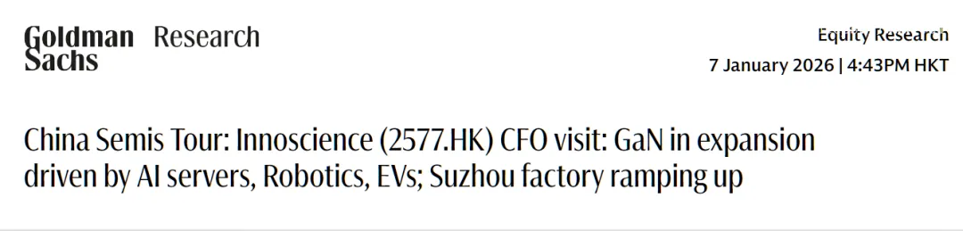 人工智能数据中心是化合物半导体的关键驱动因素之一 —— 随着 AI 基础设施的算力密度提升,功耗问题日益突出,氮化镓器件的高效节能特性能够有效解决这一痛点,带动供应链的产品规格升级。基于这一逻辑,高盛同时推荐了全球碳化硅(SiC)衬底龙头 SICC,并认为英诺赛科作为氮化镓领域的重要参与者,将充分受益于行业增长趋势。
