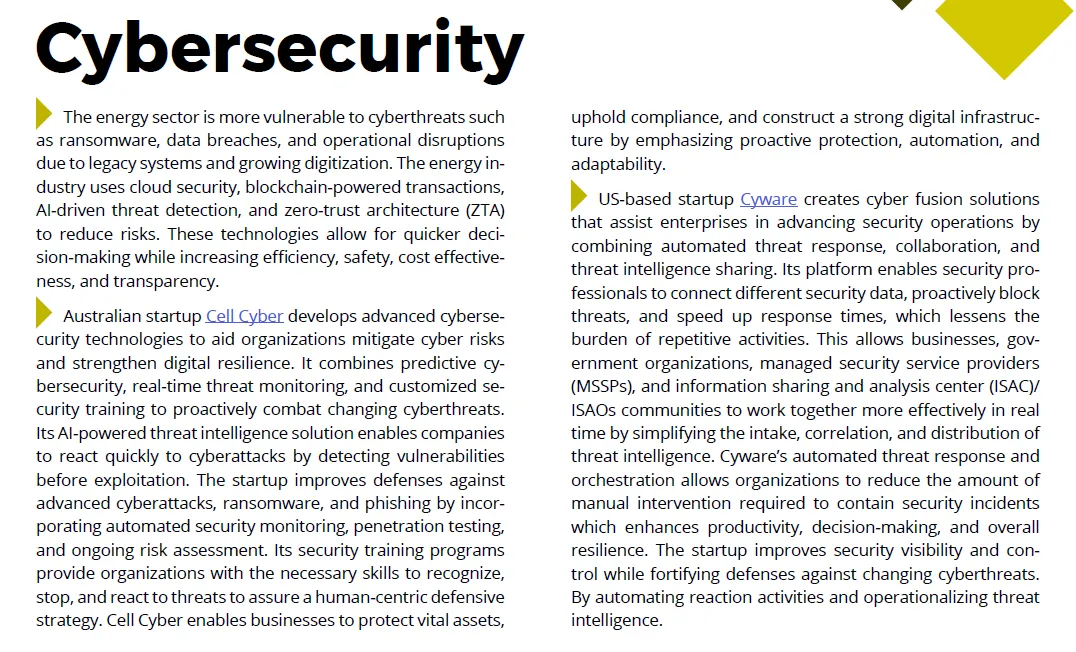 代表企业:澳大利亚 Cell Cyber(AI 威胁情报 + 安全培训)、美国 Cyware(自动化威胁响应 + 情报共享)