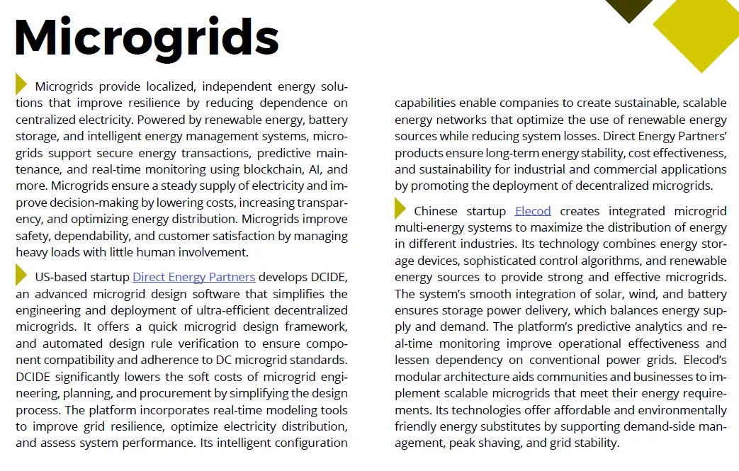 代表企业:中国 Elecod(多能源整合微电网系统)、美国 Direct Energy Partners(DCIDE 微电网设计软件)