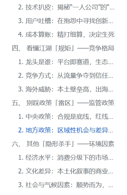 结论: “一人公司”的竞争主战场在中国本土,核心是围绕本土平台生态展开的差异化和精细化运营之战。海外市场是机遇,但门槛更高,需要更专业的知识和资源储备。