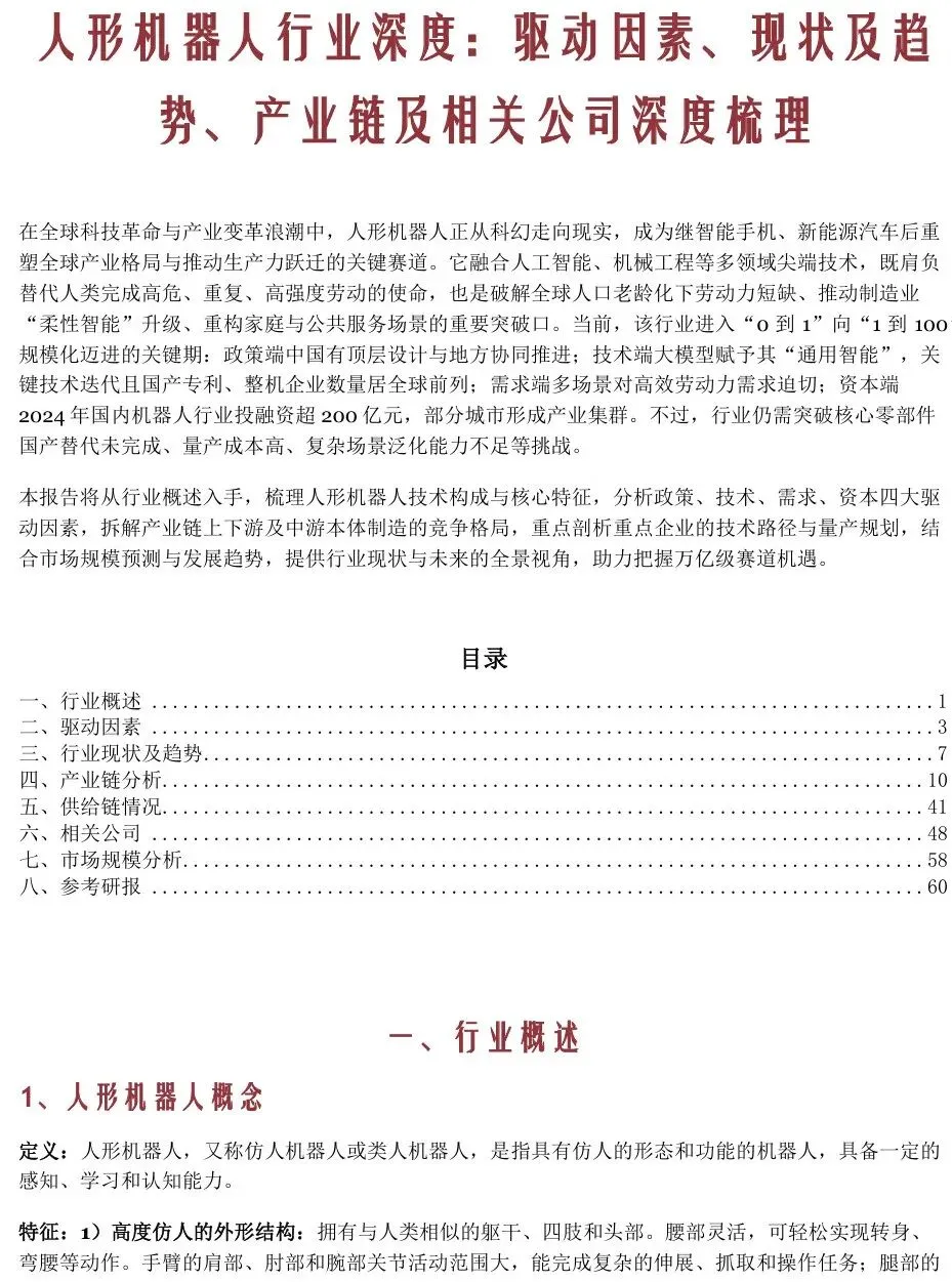 慧博智能投研: 《2025年人形机器人行业深度:驱动因素、现状及趋势、产业链及相关公司深度梳理》