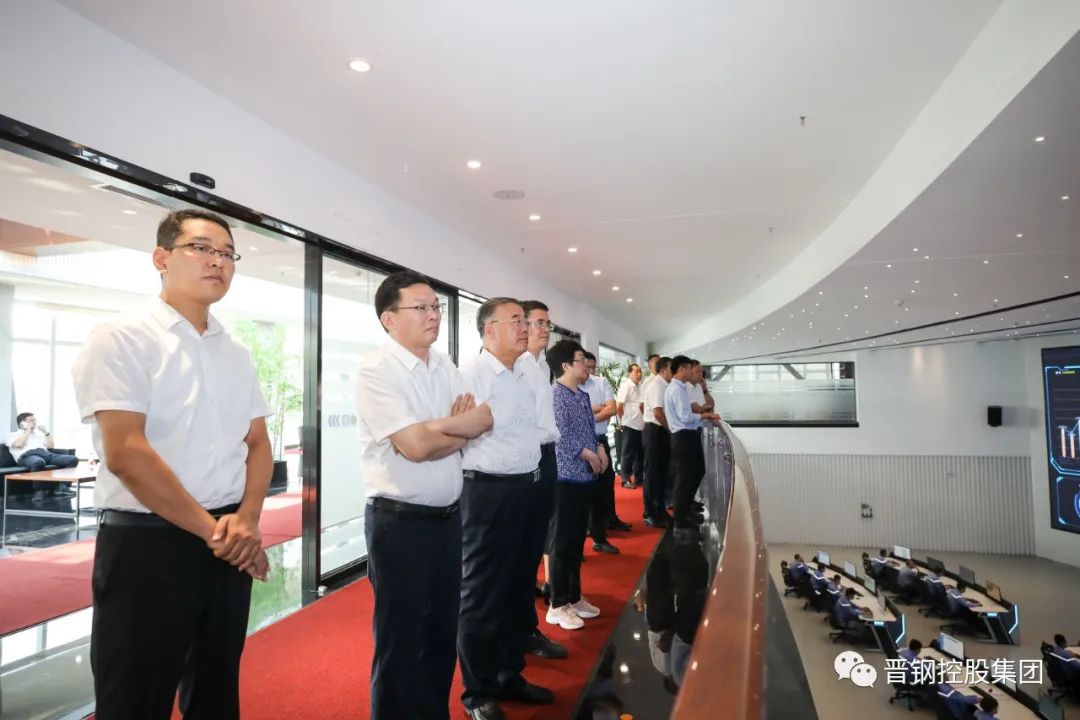 在晋钢控股集团智能管控中心,孟继红一行通过现场观摩、观看宣传片和听取工作人员介绍等方式详细了解了企业智能化建设水平及应用情况。