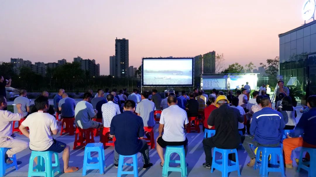 为丰富工人们的精神文化生活,激发工人们的劳动热情,8月10日-15日晚上,集团举行了“红色电影进工地”活动,将电影院搬进工地现场,为大家送上一场精彩的“文化大餐”。一块幕布、一台放映机、几十个凳子,一个简易的露天电影院出现在了兴慈八路快速路工程I标段、滨海七路工程、七彩港湾项目等工地现场,《无名》《红海行动》《湄公河》等主旋律红色电影在这里上演。恰逢夏季高温,集团还在现场发放了冰绿豆汤、西瓜等防暑降温食品,并提供免费理发服务,让他们在炎热的夏季感受到不一样的一丝“凉意”。“我们平常忙着干活,没有功夫专门去电影院看电影,集团举办这样的活动,既丰富了我们的生活,也激发了我们浓浓的爱国情怀。”工人们高兴地说道。