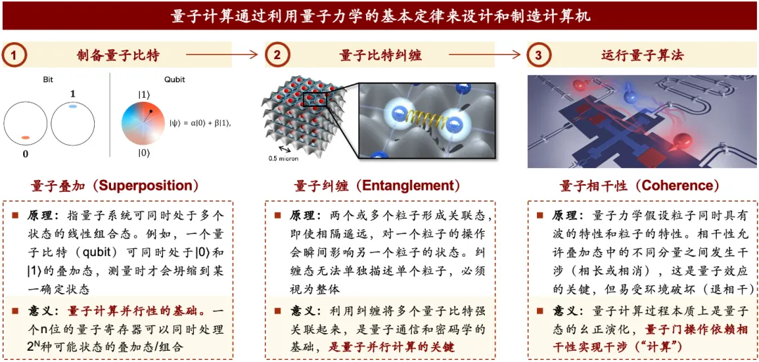 量子计算的超凡能力建立在三个核心量子力学原理之上: