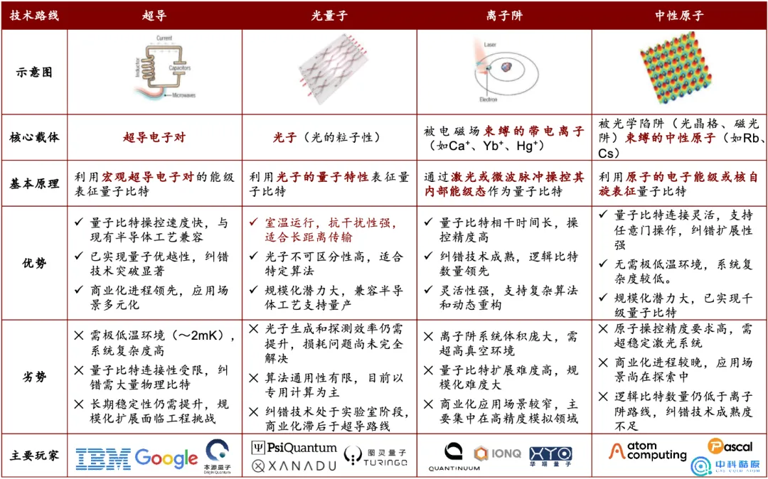 总结来说超导路线在工程化和扩展性上暂时领先,离子阱在精度上树立标杆,光量子在特定领域和室温运行上独具优势。未来5-10年,市场更可能呈现多种路线并存、针对不同应用场景的格局,而非单一技术垄断。