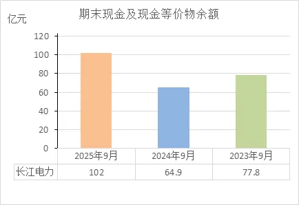 趋势向好:现金余额从 77.8亿(2023)→ 64.9亿(2024)→ 102亿(2025),呈现 V型回升并创出新高。