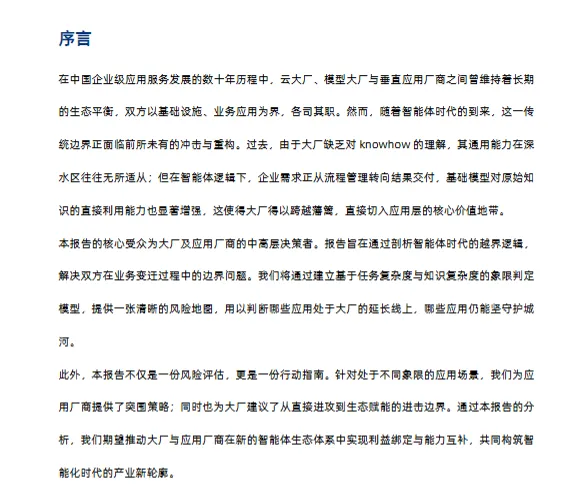 ✅ 竞合关系全新预判:揭示行业从 “分工协作” 走向 “复杂竞合” 的演变趋势,提出大厂与应用厂商 “能力重组、利益绑定” 的共生新范式。