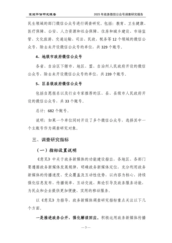 - 范围:聚焦682个政务微信公众号,覆盖国务院部委、省、市、县四级政府及民生部门。