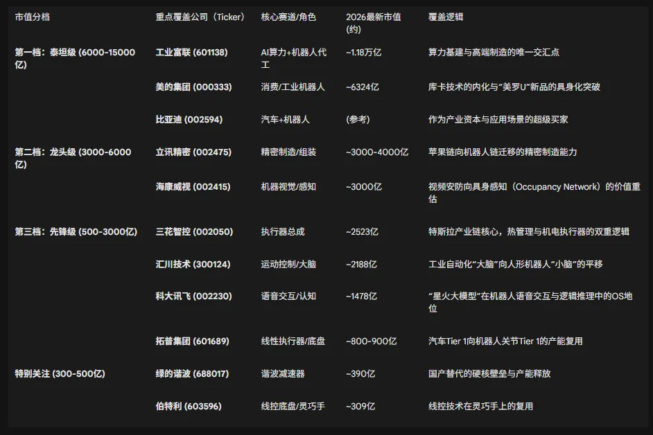 500-3000亿市值区间是“预期差”博弈最激烈的战场。这里的公司直接对应机器人的BOM成本,对销量最敏感。