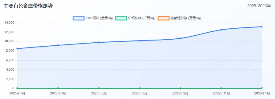 全球有色金属库存处于历史极低水平,这为价格上涨提供了坚实的基本面支撑。根据伦敦金属交易所2026年1月13日的数据,主要有色金属库存普遍处于低位:铜库存总量141,550吨,铝库存494,000吨,锌库存106,900吨,镍库存284,148吨,锡库存仅5,930吨。更为关键的是库存的去化速度。截至2026年1月中旬,LME铜库存仅为18万吨,较2025年同期减少40%,上海期货交易所铜库存也降至5万吨以下,均处于近五年历史低位。LME铝库存降至80万吨,创5年新低,国内铝社会库存也从2025年12月的120万吨降至110万吨,周度去化量达5万吨。库存的极端低位反映了供需失衡的严重程度。以铜为例,LME铜库存已经降至14万吨的极低水平,而按照当前的消费速度,这一库存水平仅能维持全球几天的消费。上海期货交易所的铜库存同样紧张,5万吨的库存水平远低于正常的商业库存需求。这种低库存状态不仅增加了价格的波动性,也为投机资金提供了炒作空间。库存数据的变化趋势更能说明问题。从2025年下半年开始,全球主要有色金属库存持续下降,特别是铜和铝的库存去化速度明显加快。这一趋势在2026年1月进一步加速,反映了需求的强劲和供给的不足。值得注意的是,不同品种的库存水平存在差异。锡的库存尤其紧张,LME锡库存仅5,930吨,按照全球锡的消费速度,这一库存水平仅能维持数周。相比之下,镍的库存相对充足,但考虑到印尼等主要生产国的库存,全球镍的实际库存水平可能并不低。库存的地理分布也值得关注。由于贸易流向的改变和供应链的调整,部分地区的库存紧张程度可能更加严重。例如,美国市场的铜库存紧张,Mercuria金属主管警告说,到2026年一季度美国以外地区可能将无铜可提。四、政策导向影响评估