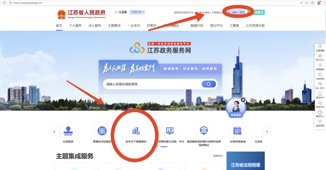 1.登录江苏政务服务网(http://www.jszwfw.gov.cn/),选择“安全生产风险报告”;