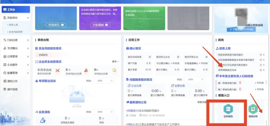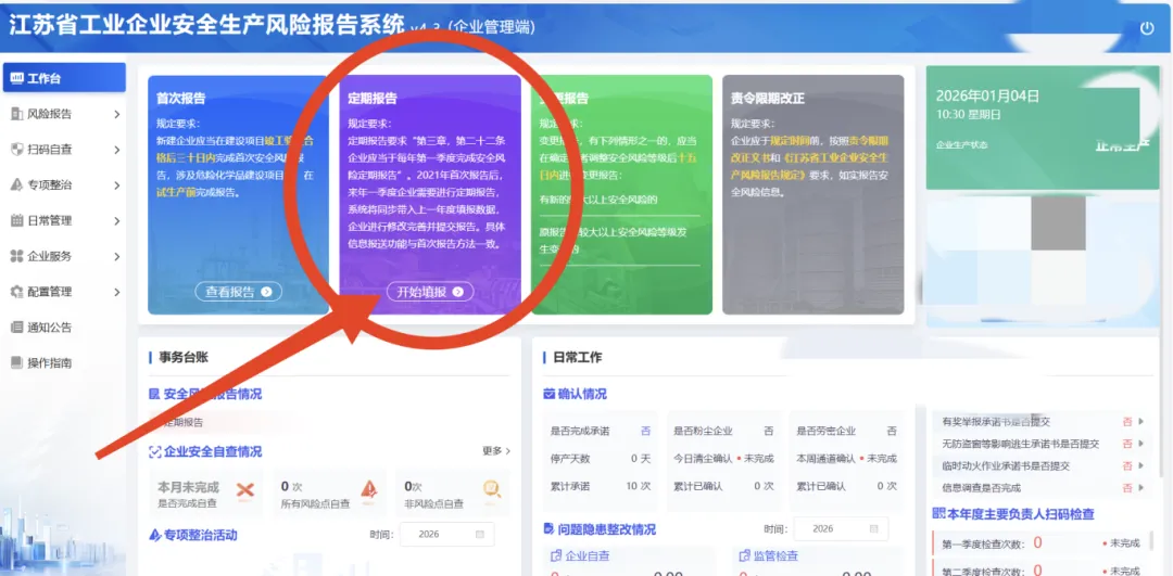 今年的风险报告填报工作已经开始,时间为2026年1月1日至3月31日,城厢镇前期已通过线上培训和专职安全员上门指导开展工作,请还未进行填报的工业企业尽快完成填报。