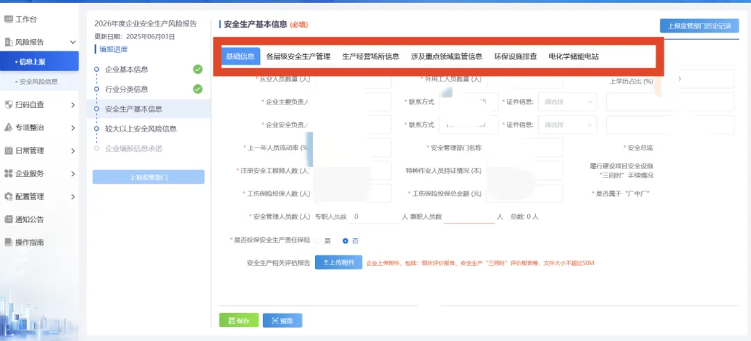 7.填写安全生产基本信息(各模块都要填写);