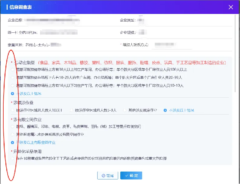 12.如实填写信息,必填项都选完之后,点击“确定”,完成填报。