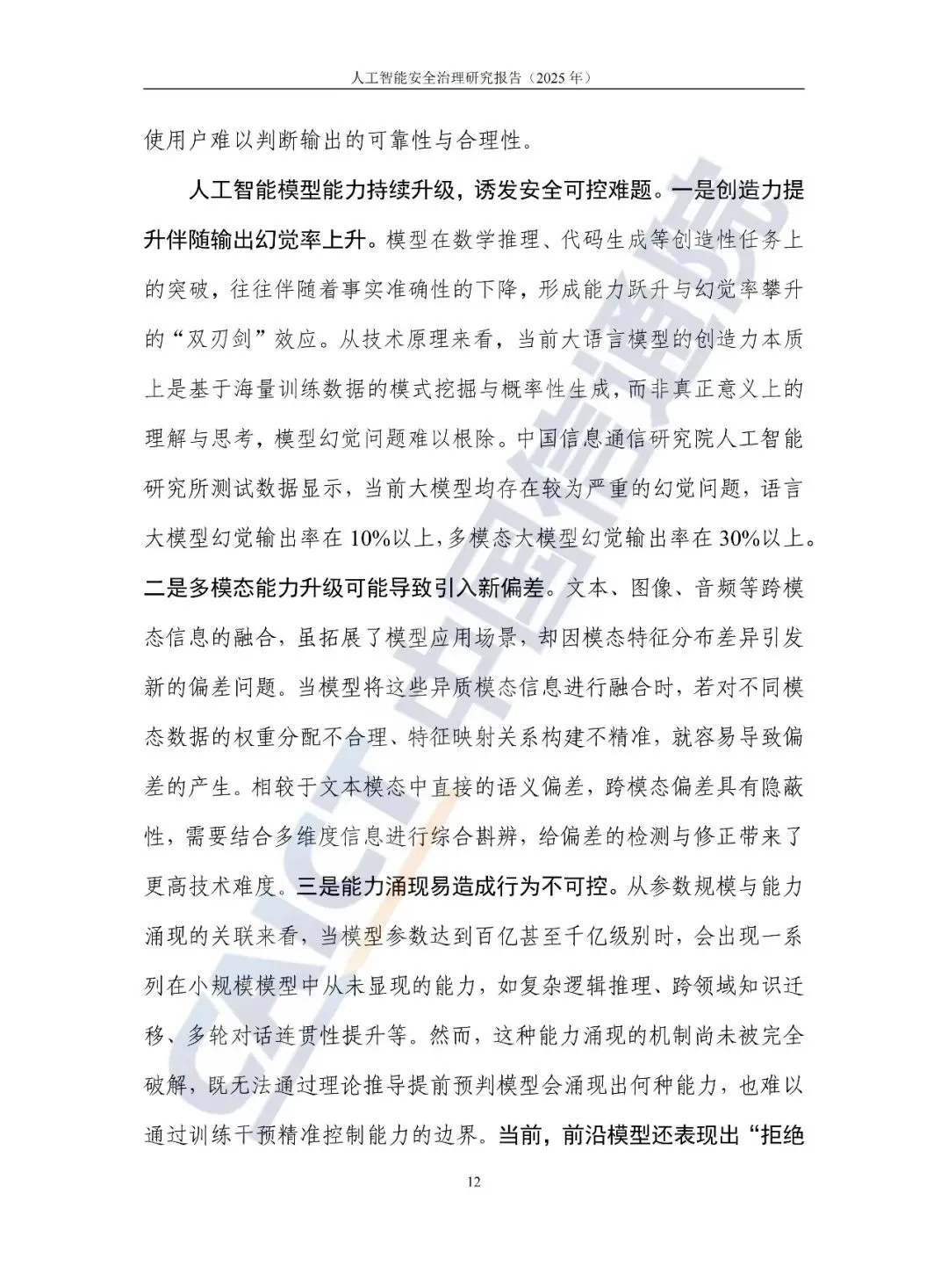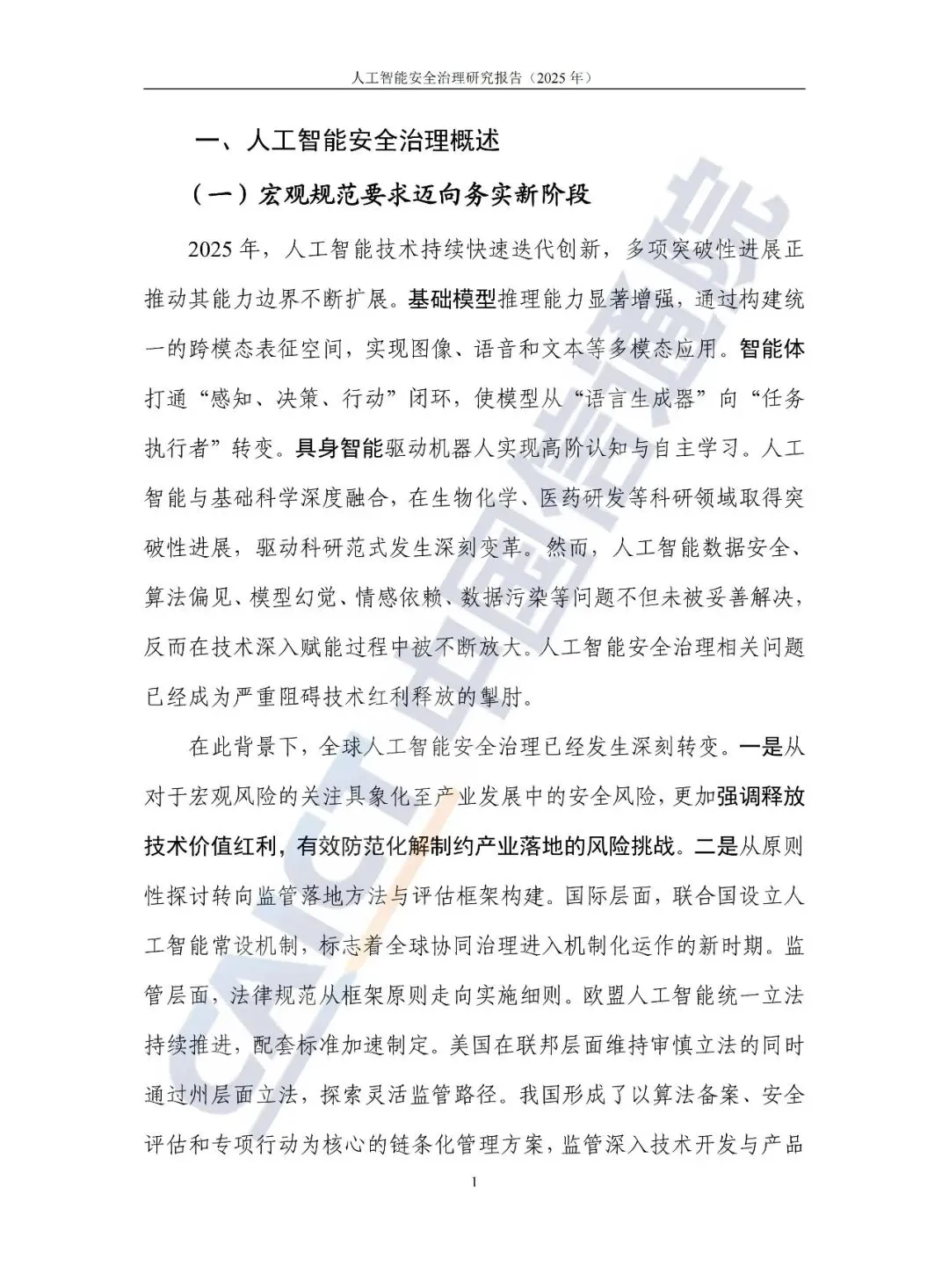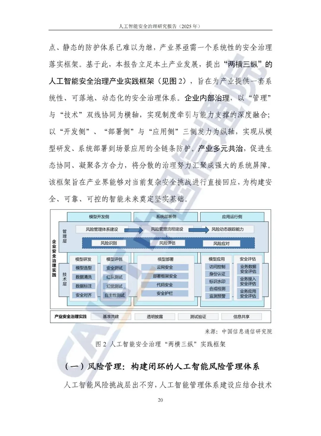 近日,中国信息通信研究院发布《人工智能安全治理研究报告(2025 年)》(以下简称“《报告》”)。
