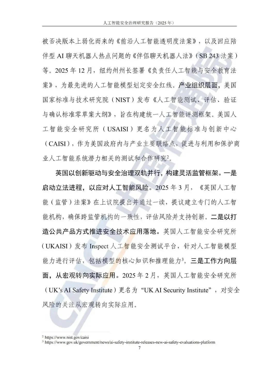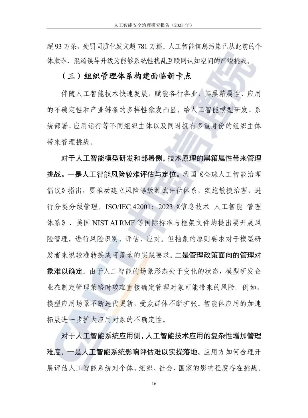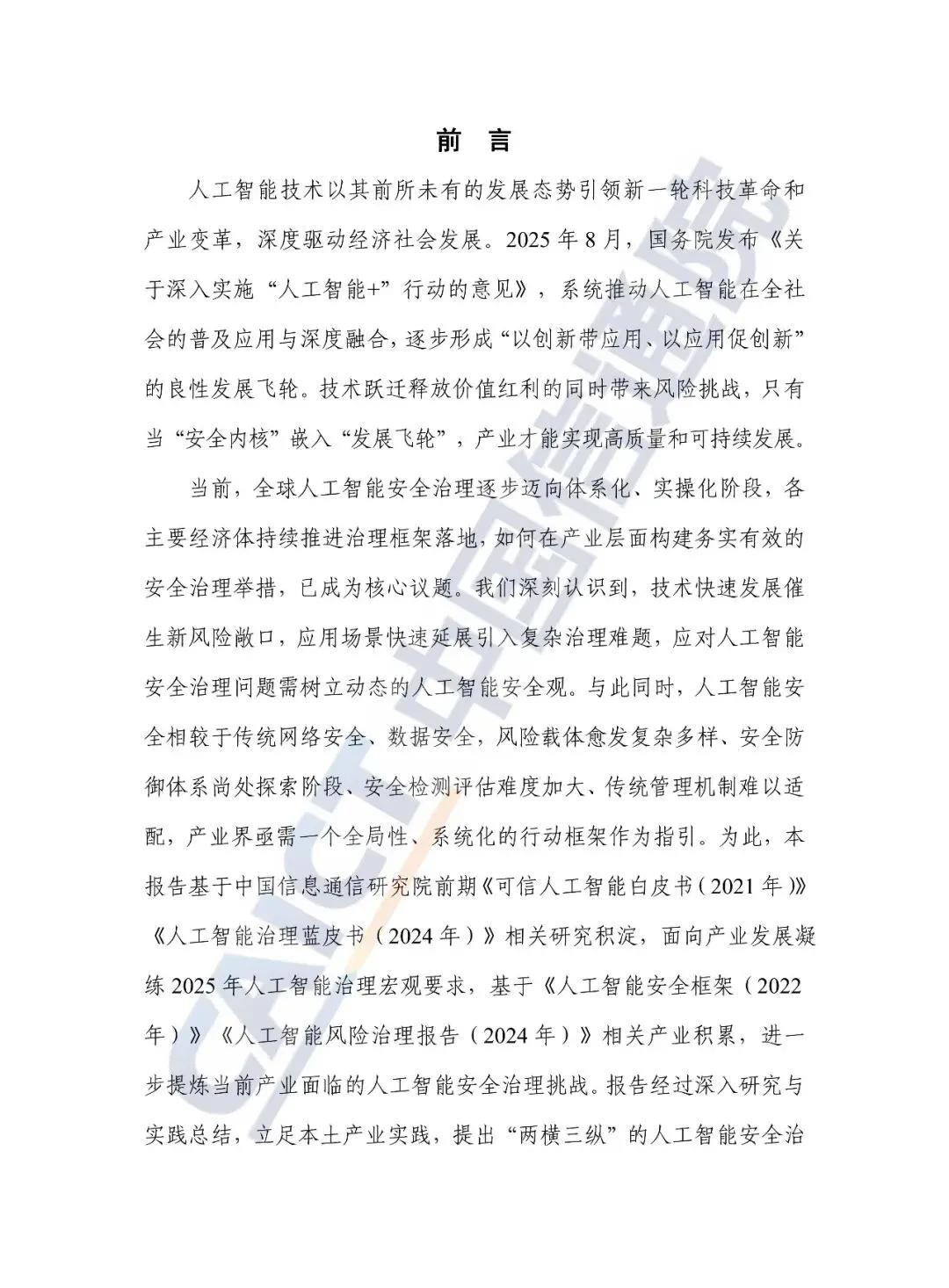 近日,中国信息通信研究院发布《人工智能安全治理研究报告(2025 年)》(以下简称“《报告》”)。