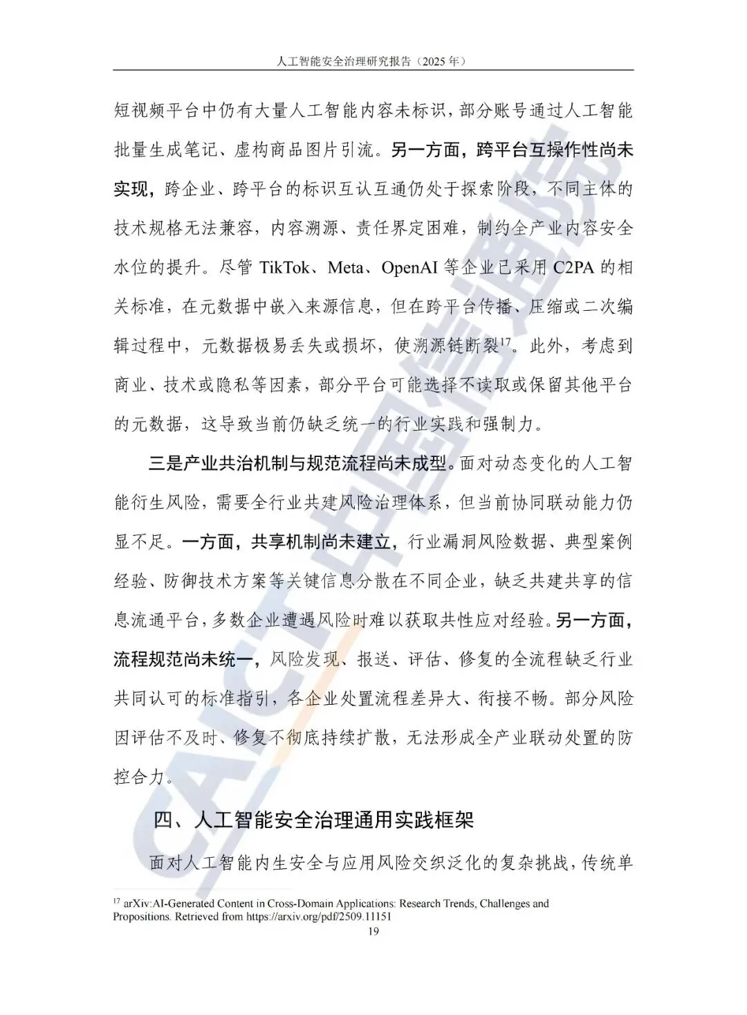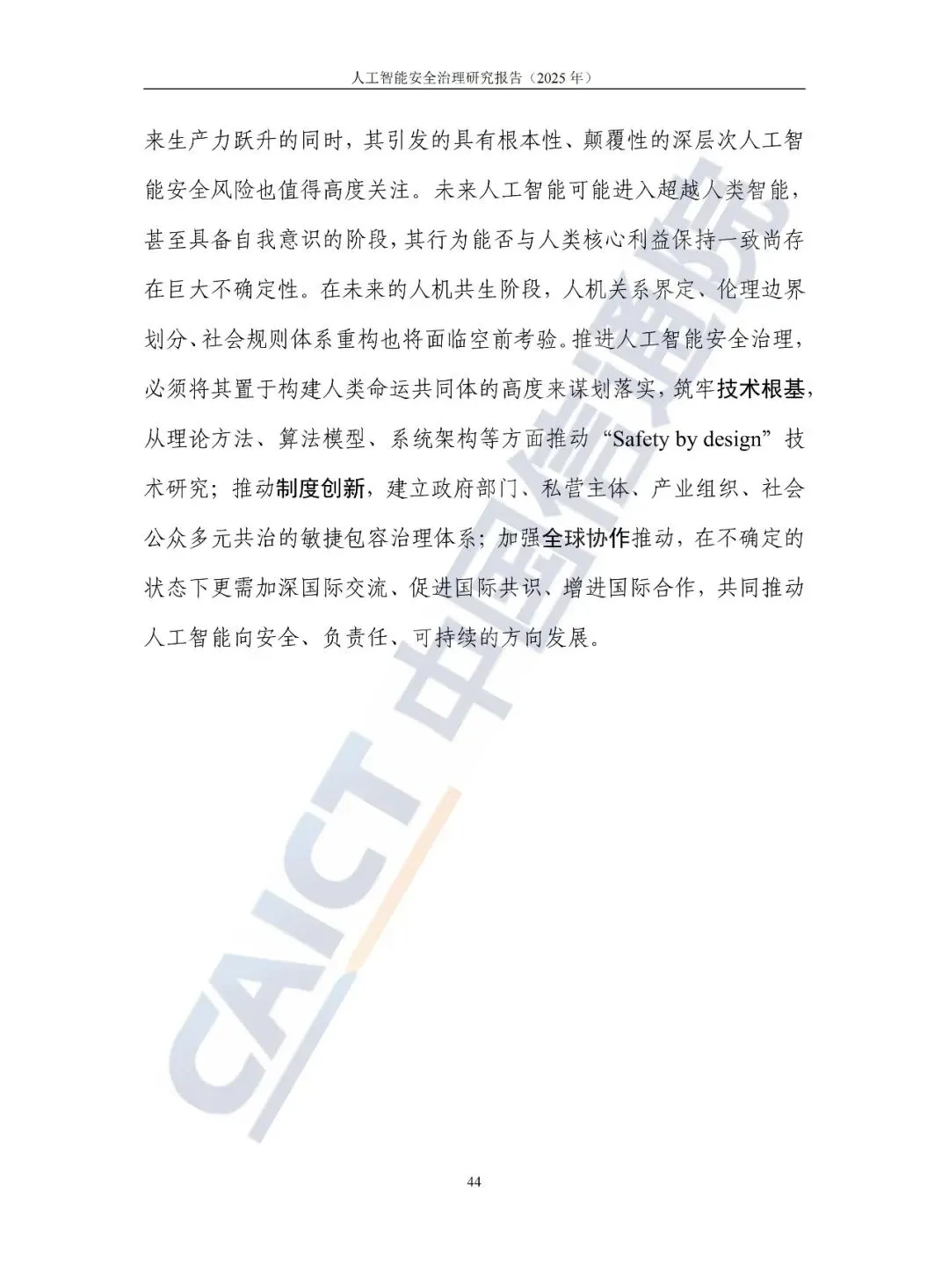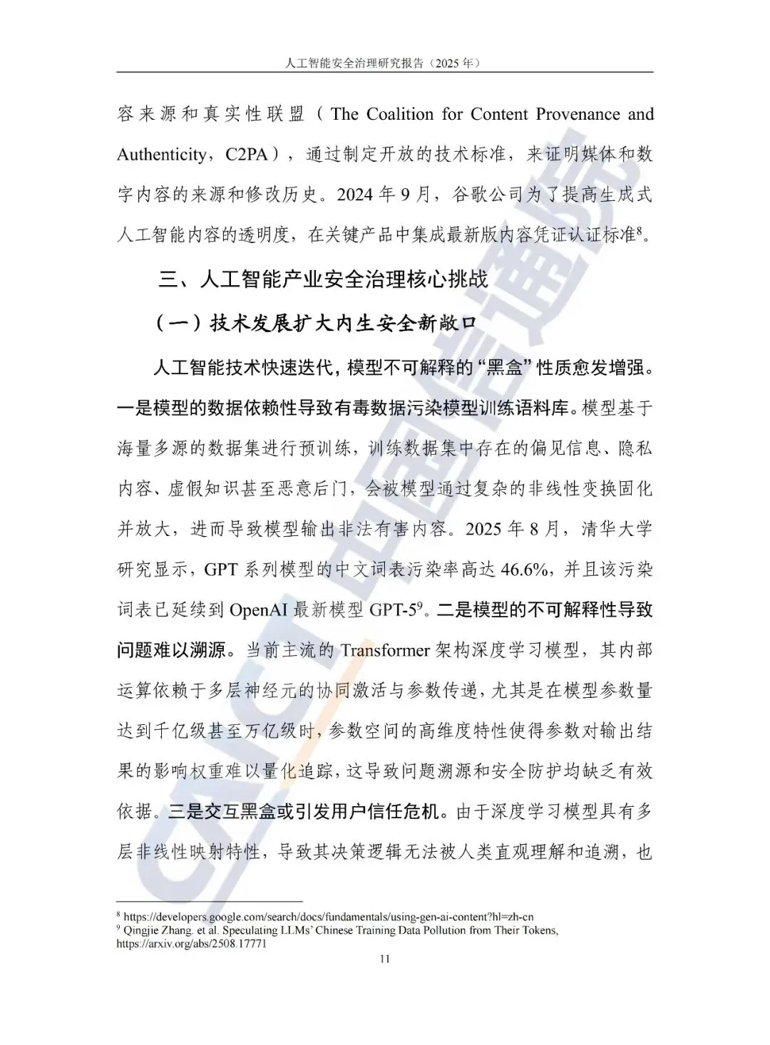 近日,中国信息通信研究院发布《人工智能安全治理研究报告(2025 年)》。