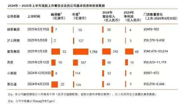 2024 年,茶百道、小菜园、古茗等成功在港 IPO;2025 年,蜜雪集团、牛大人、沪上阿姨、遇见小面等紧随其后;老乡鸡、巴奴毛肚火锅等也更新了港交所招股书。