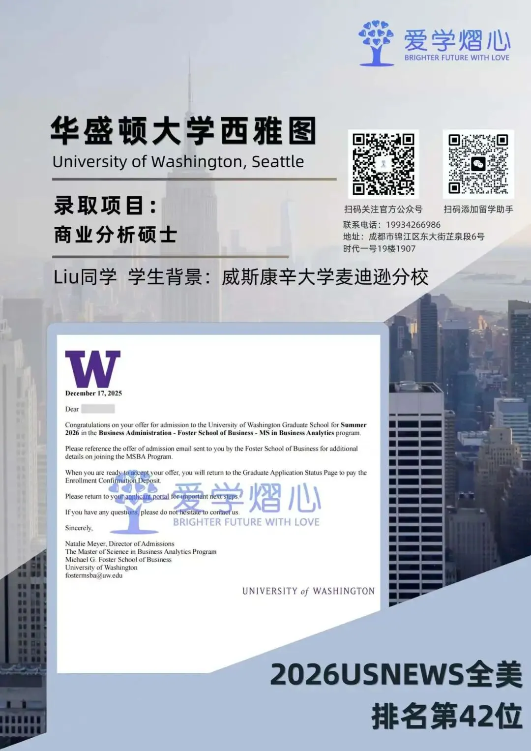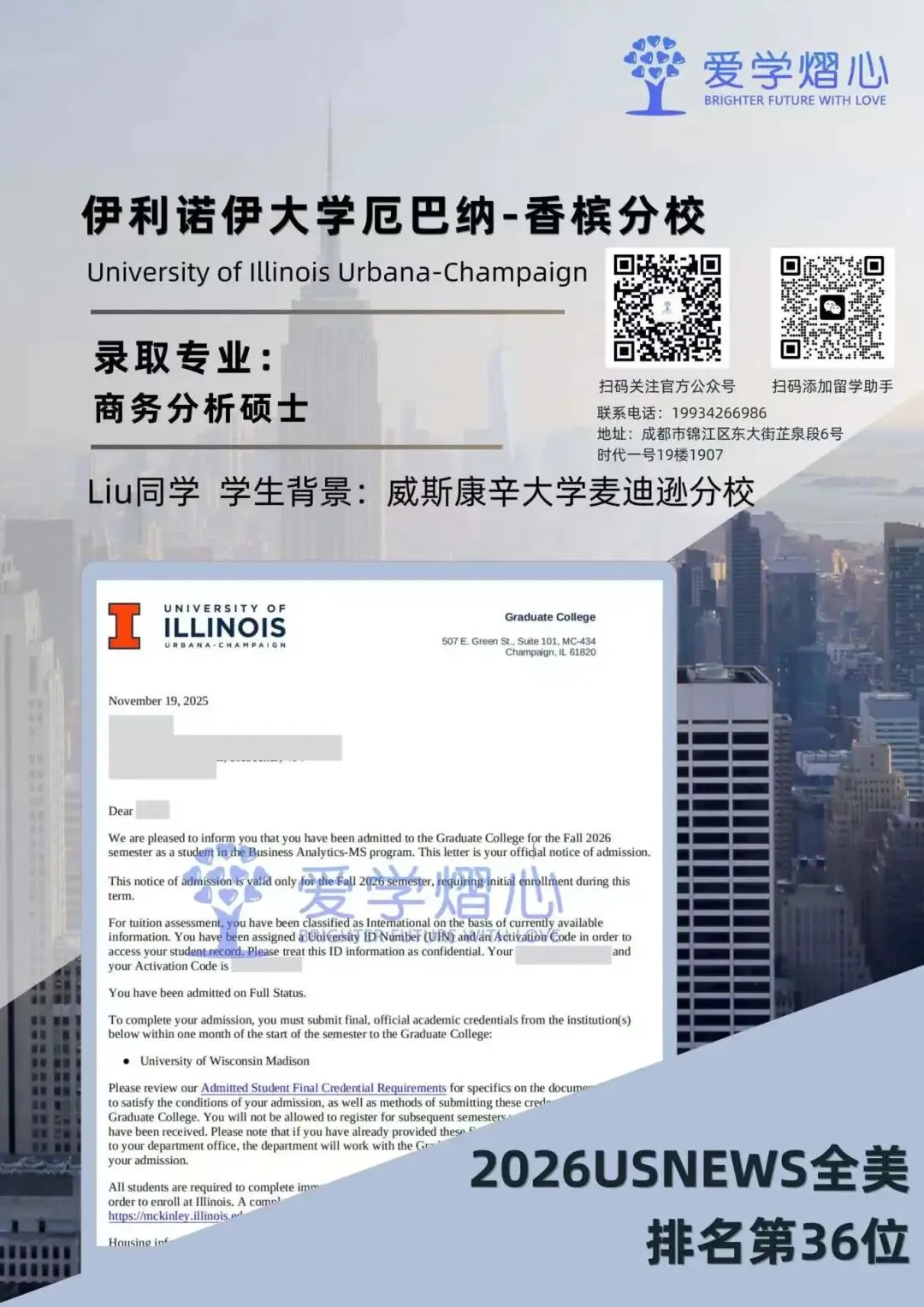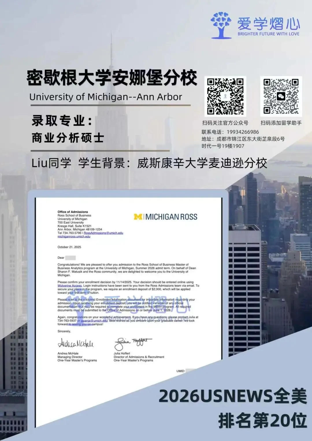 最近小爱家的学子们在商业分析硕士申请中也是捷报频传,截至目前已经斩获包括约约翰·霍普金斯大学、密歇根大学安娜堡分校、圣路易斯华盛顿大学、上海纽约大学、伊利诺伊大学香槟分校在内的多所顶尖名校录取。