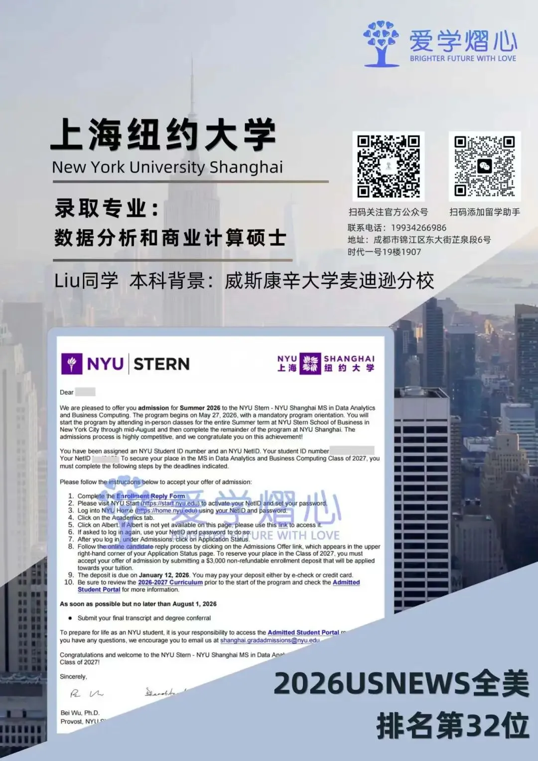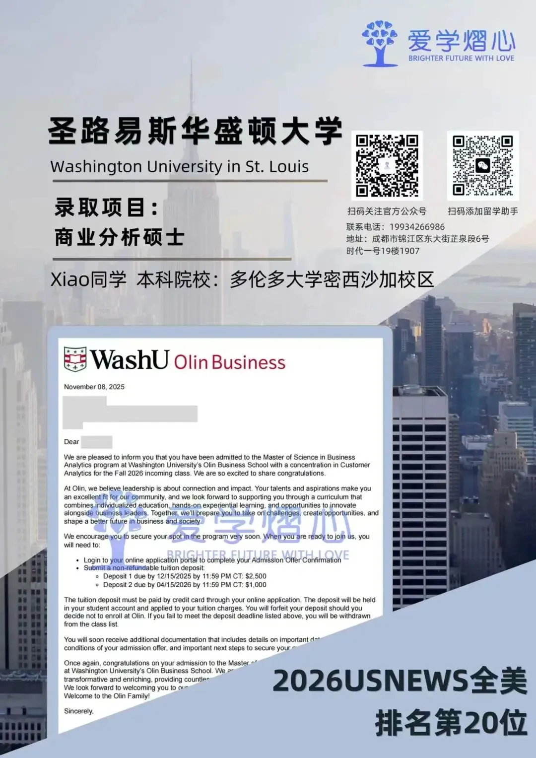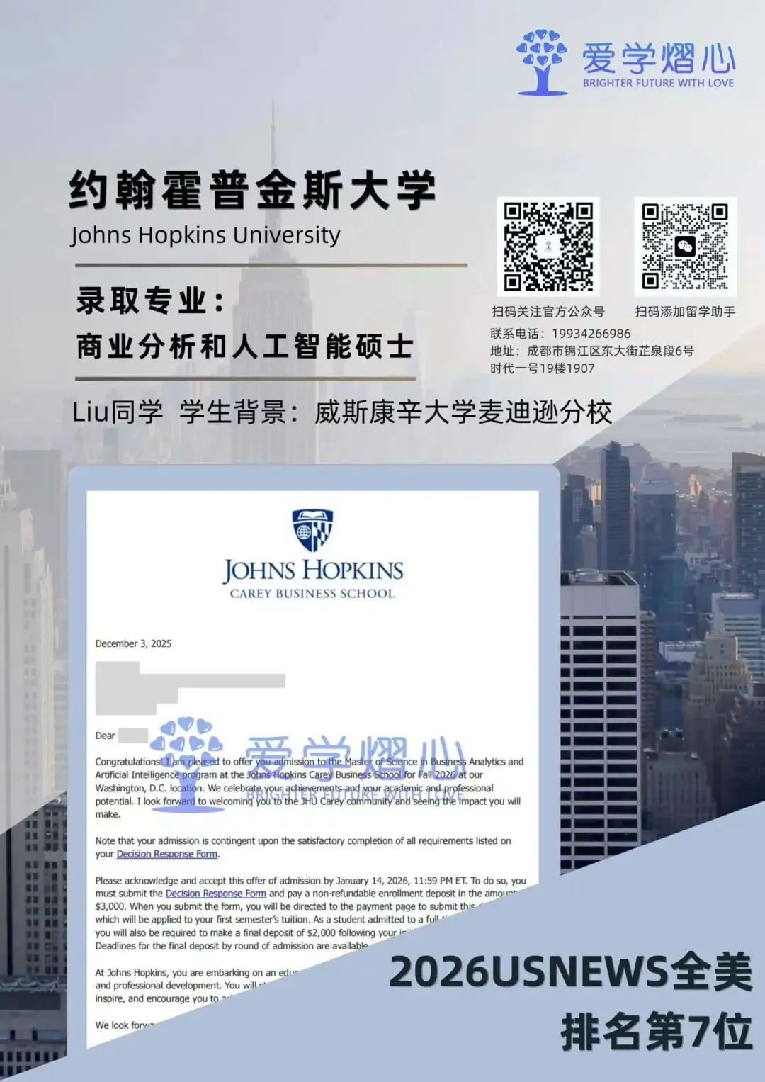 最近小爱家的学子们在商业分析硕士申请中也是捷报频传,截至目前已经斩获包括约约翰·霍普金斯大学、密歇根大学安娜堡分校、圣路易斯华盛顿大学、上海纽约大学、伊利诺伊大学香槟分校在内的多所顶尖名校录取。