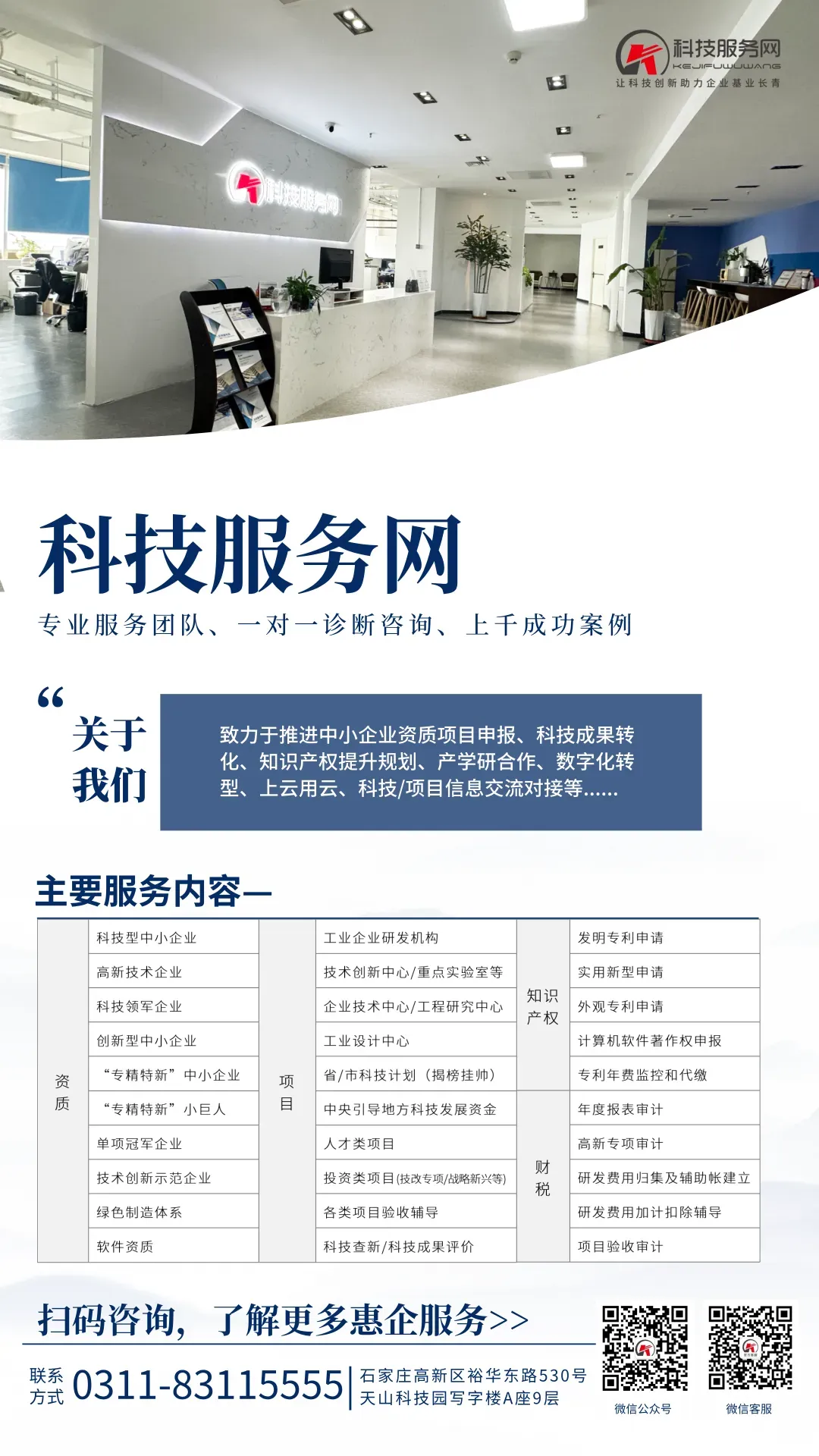 咨询科技服务网0311-83115555或添加微信客服kjfww5678,了解项目申报事宜,为您辅导解决疑难问题。