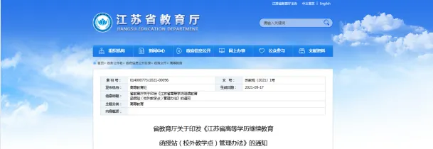 近日,省教育厅印发《江苏省高等学历继续教育函授站(校外教学点)管理办法》,是省级层面首个对高校函授站(校外教学点)管理的规范性文件,是江苏省进一步规范高等学历继续教育办学行为的重要举措