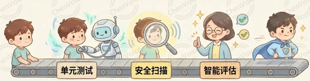 阶段一:合并前集成 (CI):在代码合并前触发单元测试、代码扫描和关键的 Agent 质量评估,提供即时反馈。