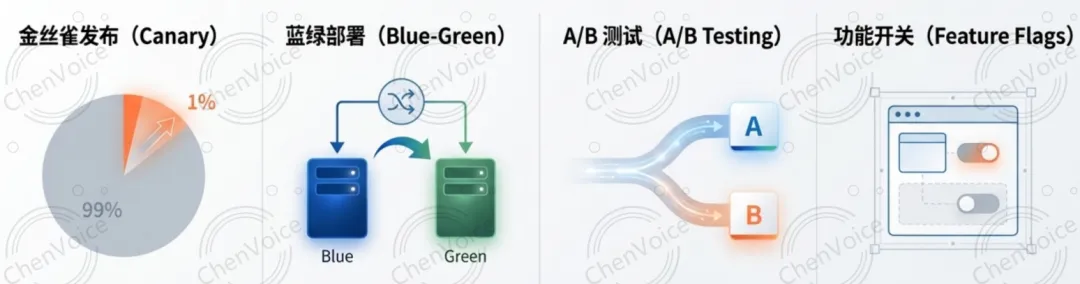金丝雀发布:先向小部分用户发布,监控后再逐步扩大范围。