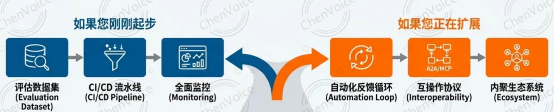 对于规模化扩展者:将从生产洞察到部署改进的反馈循环完全自动化,并围绕互操作协议进行标准化。