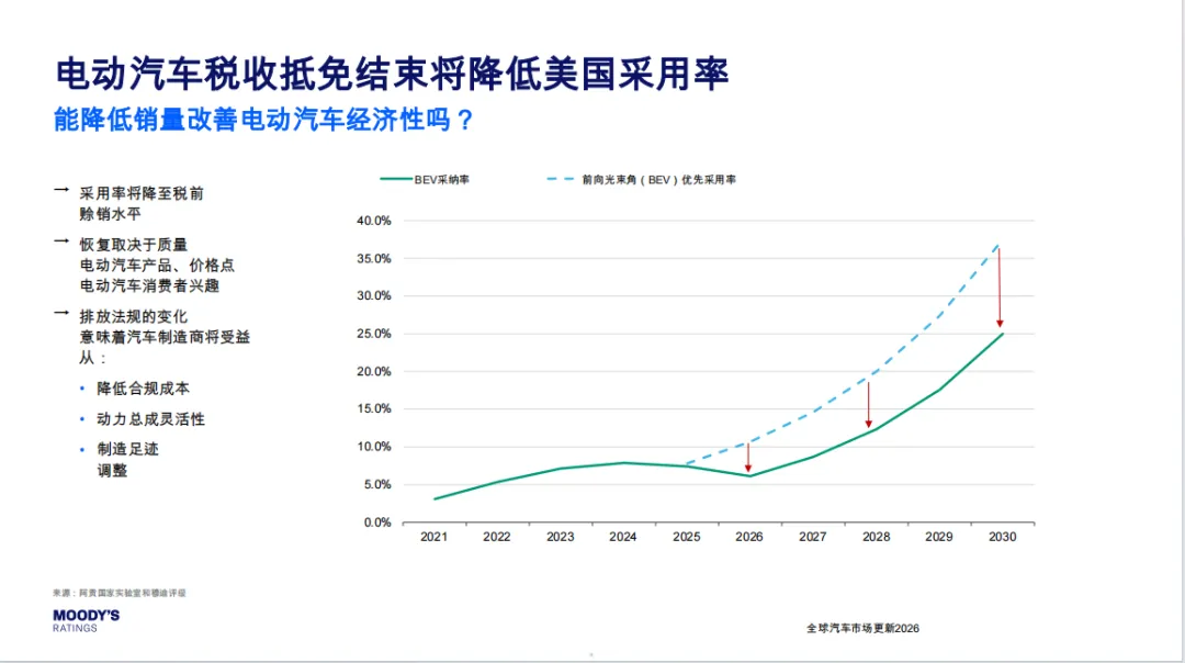 区域市场呈现差异化特征:中国市场电气化进程推动本土品牌市场份额提升,竞争愈发激烈;美国市场受电动汽车税收抵免结束影响,电动车采用率将回落,且关税政策波动频繁,50% 的轻型汽车进口来自墨西哥、加拿大等国,关税成本主要由美国公司(53%)和消费者(29%)承担;欧洲市场长期销量低迷,供应商则受益于重组与较低关税敞口,2026 年利润率有望适度回升。