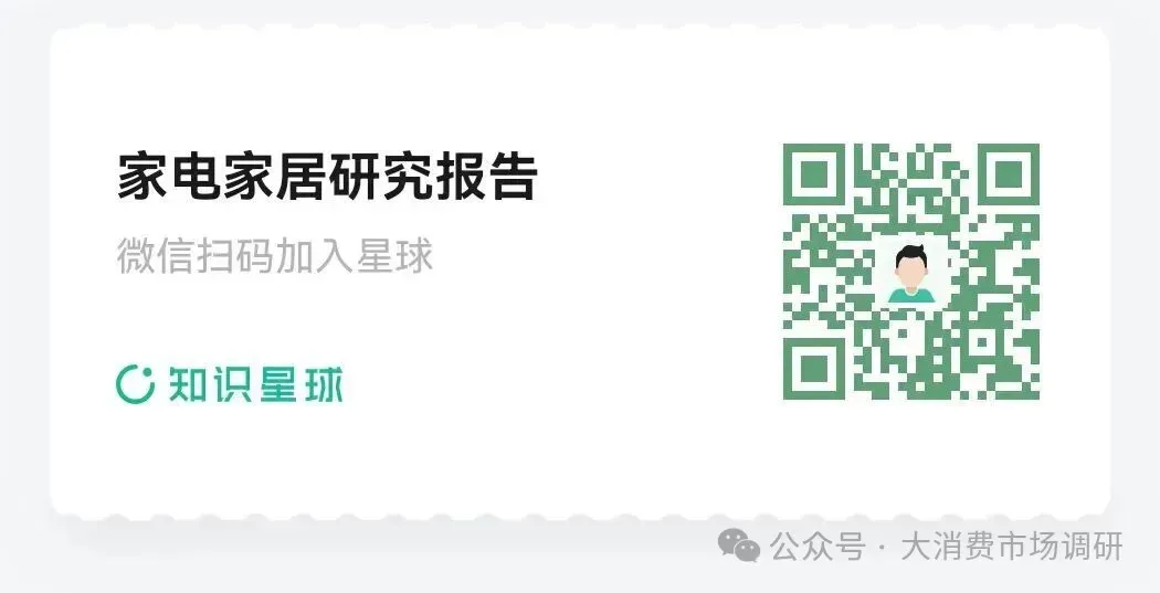传统家电品牌大多在一些单品类上打出了领先优势,2023 年,美的集团在中国区域全面推进落实“数一”战略,在家用空调、台式泛微波、台式电烤箱、电暖器、电风扇、电磁炉、电热水壶、空气炸锅等 8 个品类中,美的系产品在国内线上与线下市场份额均位列行业第一;海尔智家在冰箱和洗衣机业务方面,保持 行业领先地位,在冰箱线下市场零售额份额 45.2%45.2%,线上市场零售额份额 40.3%40.3%,在洗衣机线下市场零售额份额 47.5%线上渠道零售额份额 40.4% 。小米品牌作为后起之秀,以米家品牌作为其智能家居生态的核心载体,深度整合生态链资源、强化用户场景体验,为小米在大家电领域的快速崛起提供了战略支撑,通过米家 App 将空调、冰箱、洗衣机等大家电与扫地机器人、智能灯控、安防设备等互联互通,打造全屋智能。小米在上游应用端的优势也支撑了全屋互联的效果较好,极大地刺激了消费者需求, 2 024 年小米的三大白电出货量快速增长,创下了 历史新高,根据小米公司年报, 2 024 年小米的空调产品出货量超 6 80 万台,同比增速超过 50%50%,冰箱出货量超 2 70 万台,同比增速超 3 0%0%,洗衣机出货量超 1 90 万台,同比增速超 4 5% 。