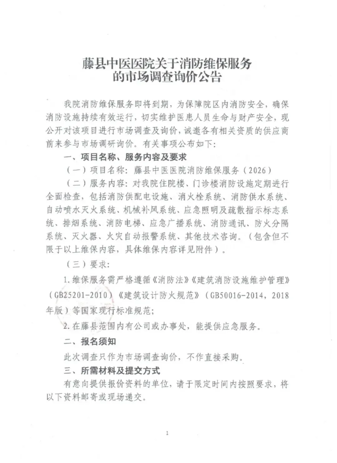 藤县中医医院关于消防维保服务的市场调查询价公告