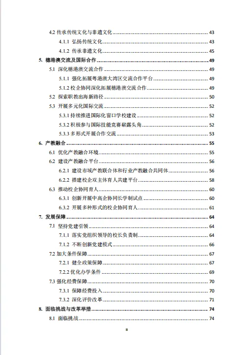 产教融合与发展保障不断强化。构建 “一轴三区多支点” 布局,建设 9 个市级市域产教联合体,创新中高企协同长学制等育人模式。坚持党建引领,落实党组织领导的校长负责制,健全政策与经费保障体系,深化办学质量评价改革,激发学校办学活力。
