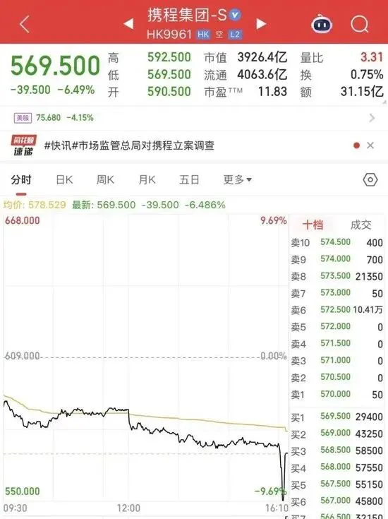 消息一出,携程港股尾盘直线跳水,单日跌幅超9%,市值蒸发超百亿港元。而在社交平台上,网友们的反应却出奇一致:“终于等到这一天!”“早就该管管了!” 这场看似突然的立案,实则是行业矛盾长期积累后的必然爆发,背后藏着无数中小商家的无奈与消费者的隐性权益受损。