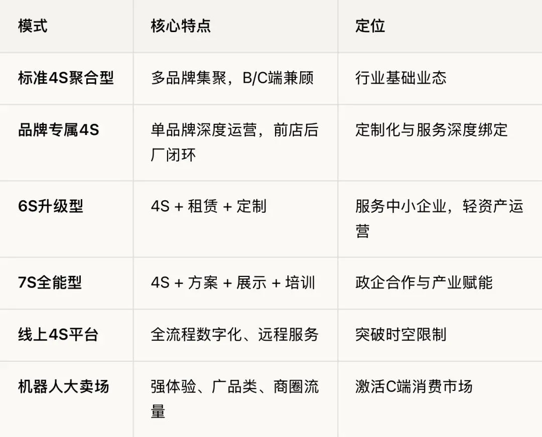 - 商业模式多元:从4S到6S、7S、RaaS订阅,盈利模式从 “硬件差价”转向“硬件+服务+金融+生态”。